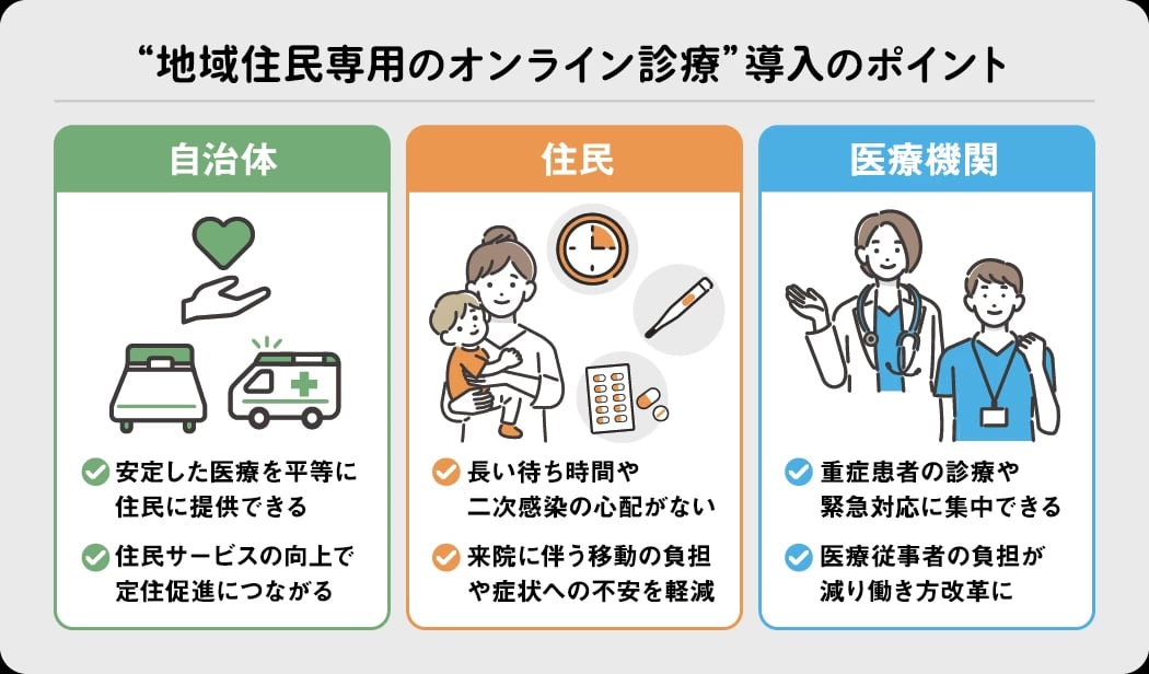 栃村さんは「二次救急を担う医師としても、軽症患者がオンライン診療を利用してくれることはありがたいです」と語る。これまでは重症患者が搬送されてきても、その合間に風邪などの軽症患者を診る必要があった。そうした負担が減り、結果的に働き方改革にもつながっている。「現場の声に耳を傾け改善を図る自治体は、医療従事者にも魅力的です。将来的に医師の確保につながり、住民が安心して暮らせる、そんなまちづくりにも貢献する取り組みだと思います」。