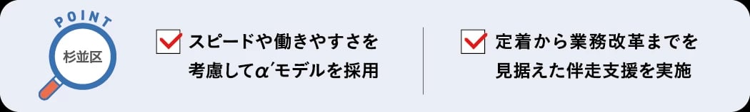 働きやすい職場をつくるためα′モデルの採用を決定。