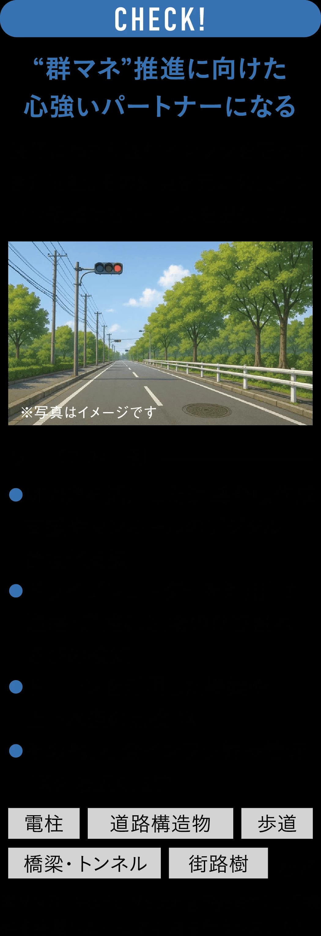 頭を悩ませていた中、「NTT東日本」から道路維持管理の効率化に関する提案があった。国土交通省が提唱する“群マネ(※)”の考え方にもとづいた内容だったという。周辺自治体と連携しつつ、事業者や地域住民とも手を組み、インフラ全体の包括的なDXと予防保全への転換を進める取り組みだ。「同社は、我々と同じくインフラ維持管理者としての視点をもち、最先端の技術や知識もある。そうした企業スキルを評価し協働することに決めたのです」。令和7年2月に同社と連携協定を締結。さらに隣接する韮崎市(にらさきし)と提携し、山梨県のアドバイスを受けながら、総務省の実証事業にプランを提案。採択を受け、道路維持管理業務の効率化に向けた“甲斐市・韮崎市の共同実施モデルの検討”を開始した。