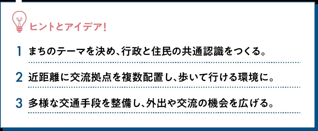 歩いた先に交流が待っていれば自然とまちを歩くようになる。