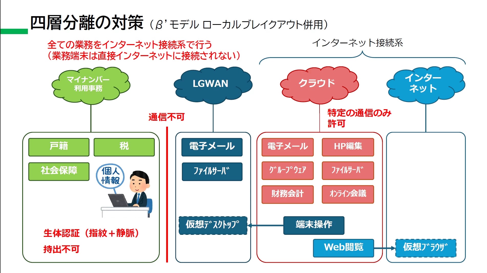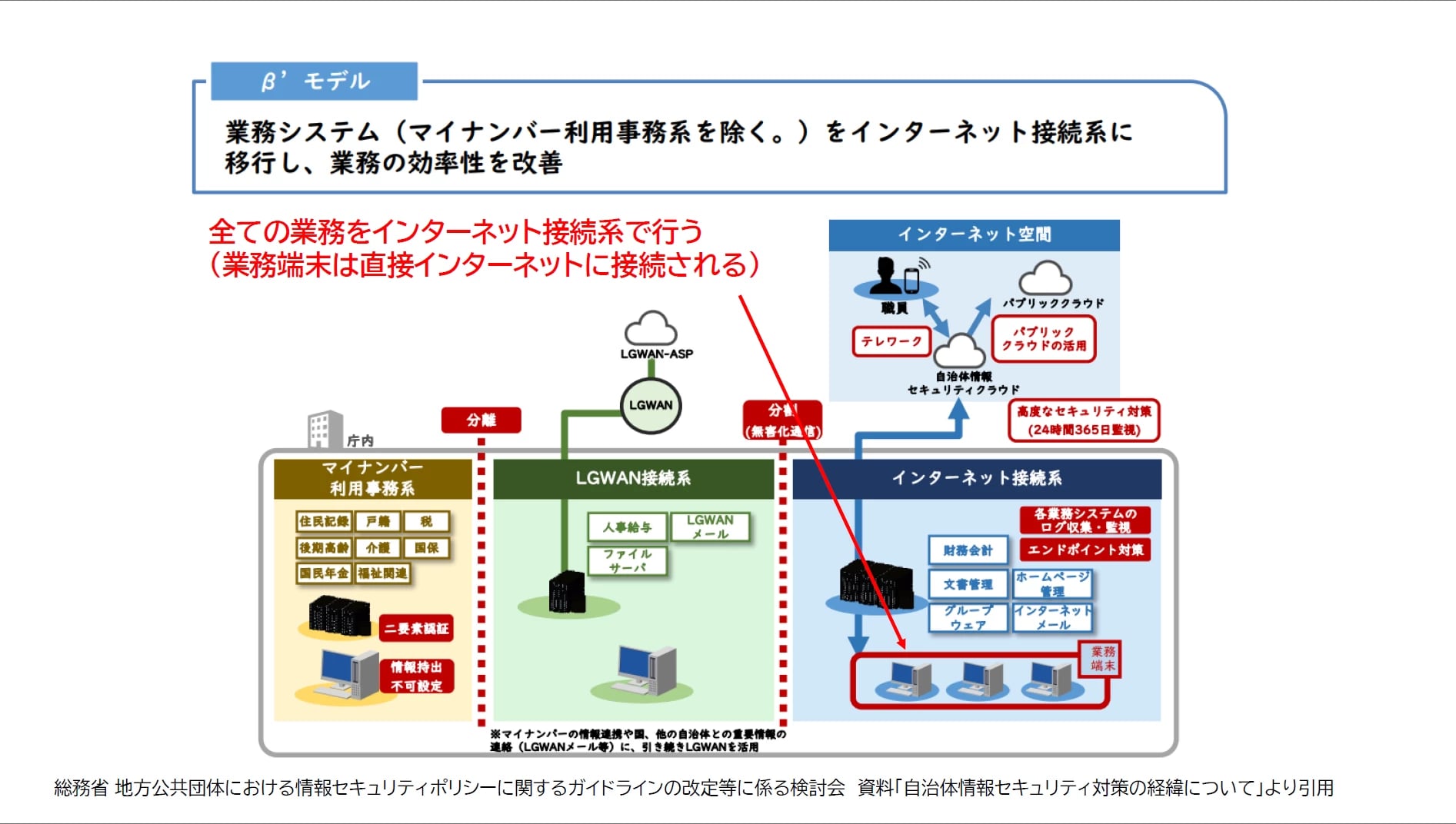 一般的なβ′モデルは「業務端末をインターネット接続系に置き、直接インターネット接続する」形です。