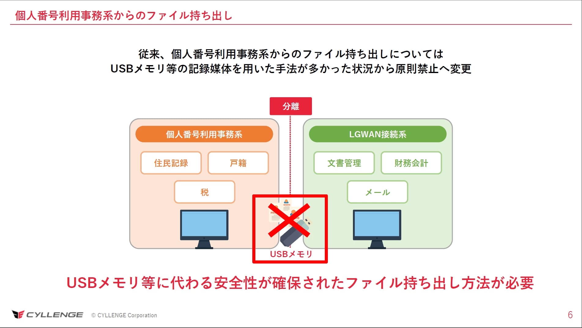 従来、ネットワーク間のファイル持ち出しはUSBメモリーなどの記録媒体に頼るケースが多かったと思います。ただ、経産省のガイドライン上は原則禁止です。