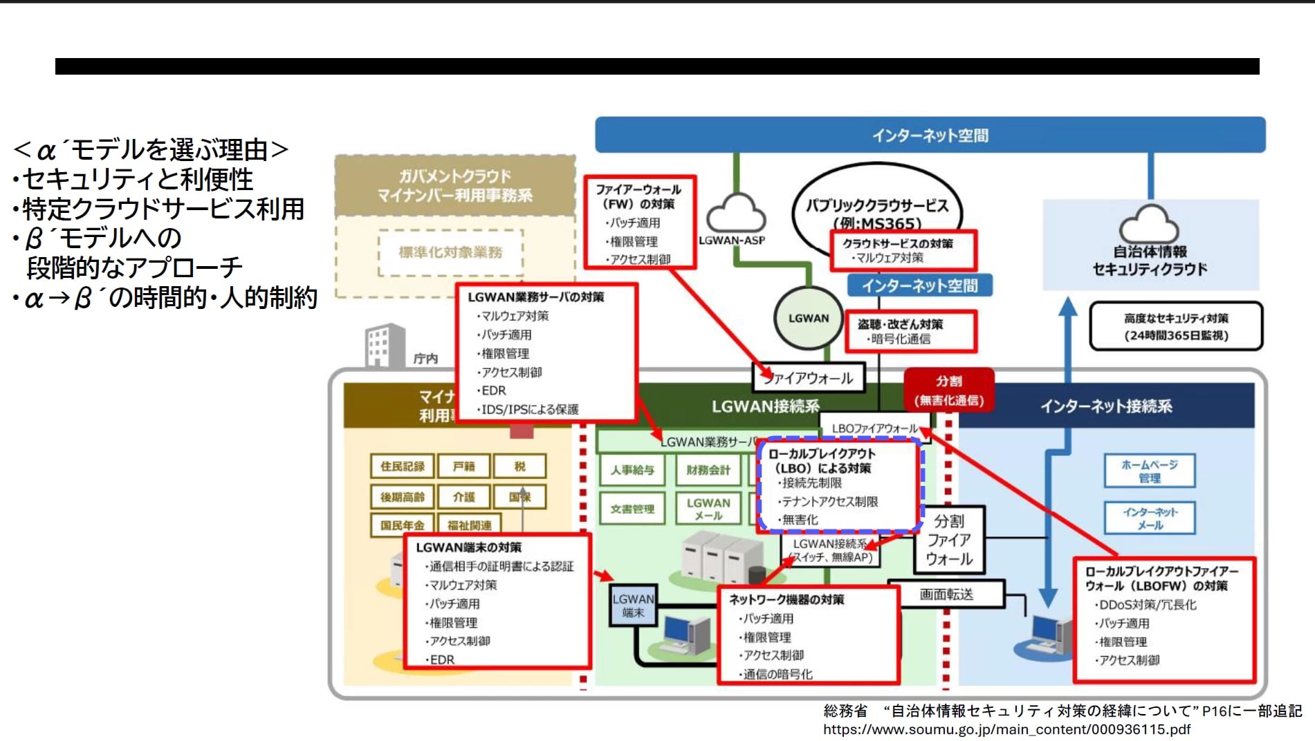 これまで自治体では、いわゆる境界防御型のセキュリティモデルを採用してきました。多くの自治体がαモデルを採用し、この方式でセキュリティを確保してきたと思います。