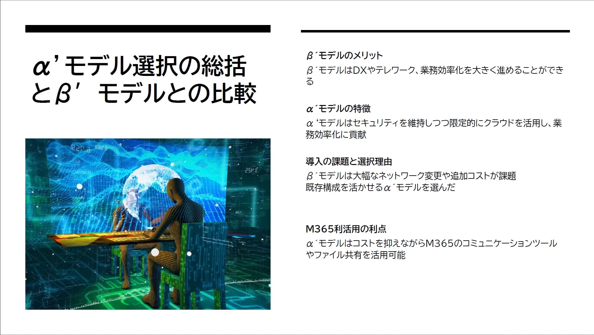 深井:オンプレでいろいろ作ってきた自治体は、ファイルサーバーが少ない、といった課題を抱えているところも多いと思います。その点では、α′を導入することで広がりが出てくるのではないかと考えています。