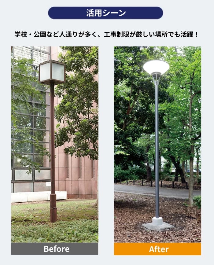 街路灯の倒壊から住民を守る “基礎を流用して設置”という選択肢。