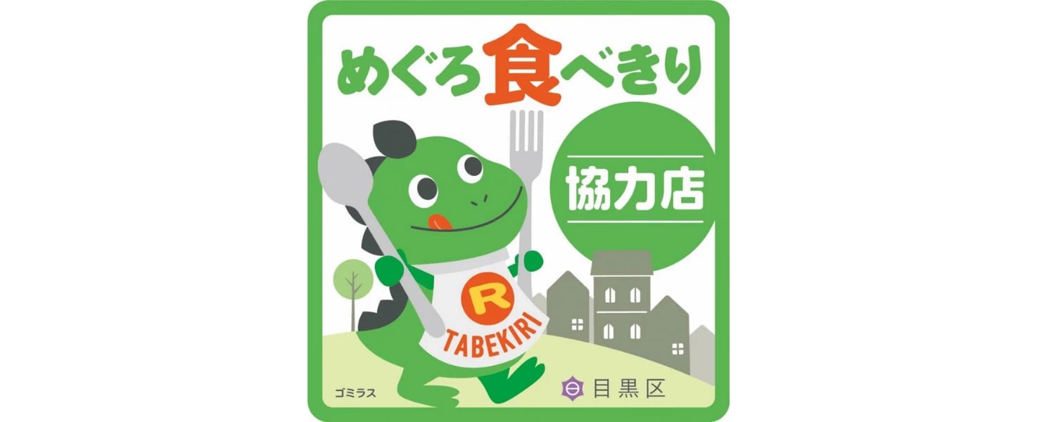 令和7年10月からは、目黒区とファミリーマートが「涙目シール」に関する連携を開始。これを受け、レストランでも、同シールを活用した食品ロス削減に取り組んでいます。売れ残ってしまいそうな商品を、涙目のキャラクターと「たすけてください」のメッセージでお知らせすることによって、利用者と協力しながら廃棄量を削減しています。このほか、箸やカップなどの使い捨て製品をなくす取り組みを進めるなど、ごみ減量に関する区の政策発信に一役買っています。