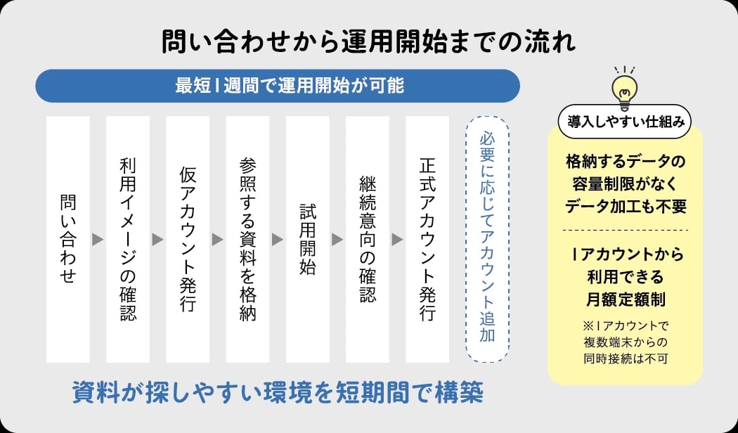 1課1アカウントから導入でき、データを格納してすぐに使える。