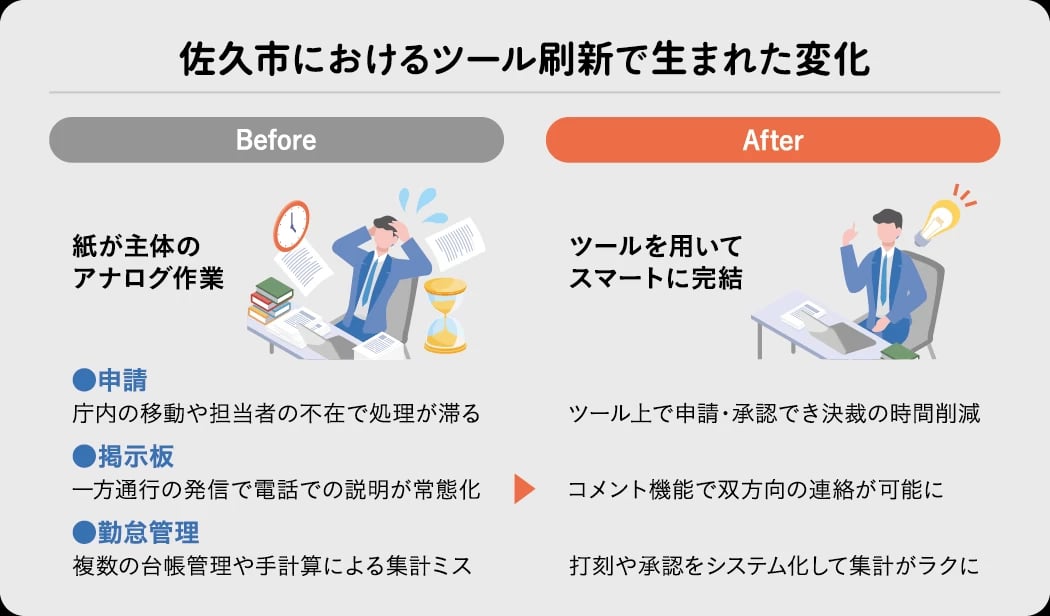 庁内の情報共有などに役立つグループウェア。しかし、機能が不十分だと職員のストレスを生むこともある。佐久市ではそうした状況からの転換を図り、グループウェアの刷新とともに拡張ツールを導入。業務改革の機運を高めているという。