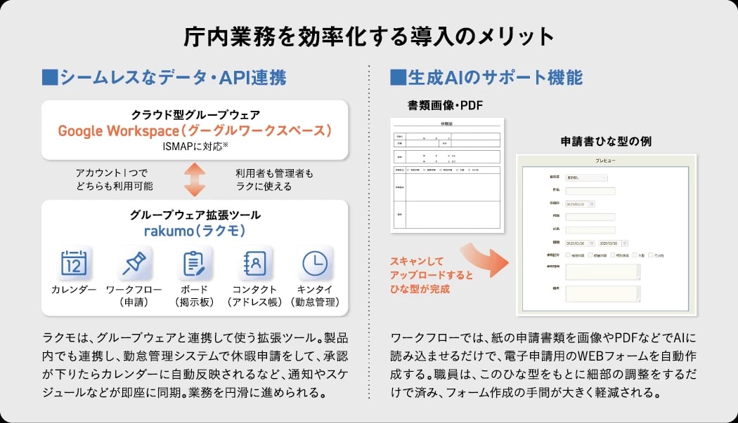 今後、全部署で申請手続きのオンライン化を展開し、紙からの脱却を図るという。「当市では、今年度までに印刷用紙の購入枚数を令和5年度比で30%減らす目標を掲げています。達成を目指しつつ、効率化で生んだ時間を市民サービス向上に充てたいですね」。また、森下さんも「業務効率は格段に向上しました。今後は、事務処理の自動化などにも適用したいです」と意気込む。同市の取り組みからは、改善を生むためには変化を受け入れる勇気も必要だということがうかがえる。