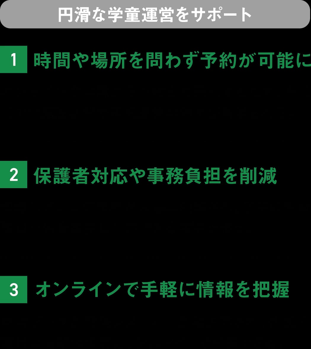 同社は子育てサポート企業として、現場支援を通じて子どもの育成を後押ししている。学童保育におけるWEB申請や施設間で行うリアルタイムな情報共有など、データ連携や運用のデジタル化に課題があるなら、相談してみては。