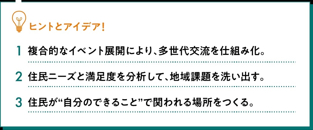 住民が主役となる仕組みで誰もが関われる拠点をつくる。