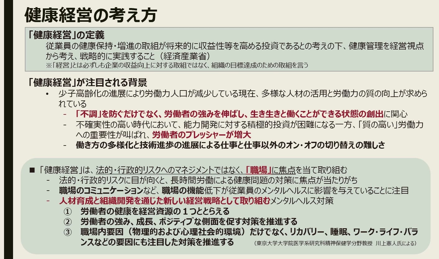 - 近年重視されている「健康経営」についてご説明ください。