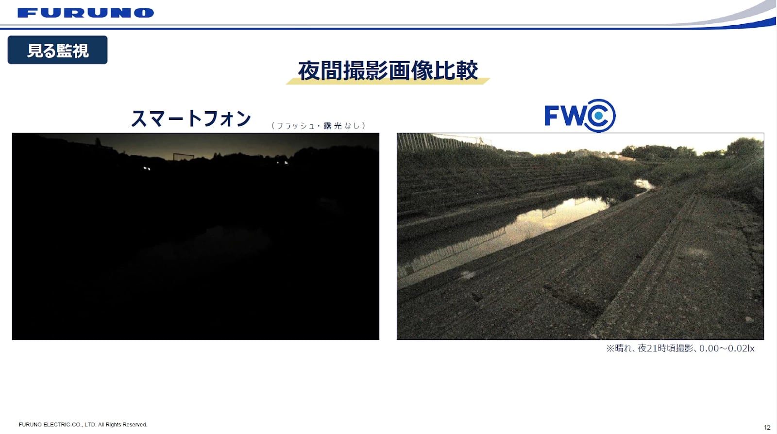 夜間撮影についても、わずかな明かりがあれば河川の状況を十分確認できる性能があります。撮影した画像はLTE回線でクラウドにアップロードされ、専用サイトの他、自治体ホームページなどとも連携可能です。国土交通省の「川の防災情報」との連携実績もあります。