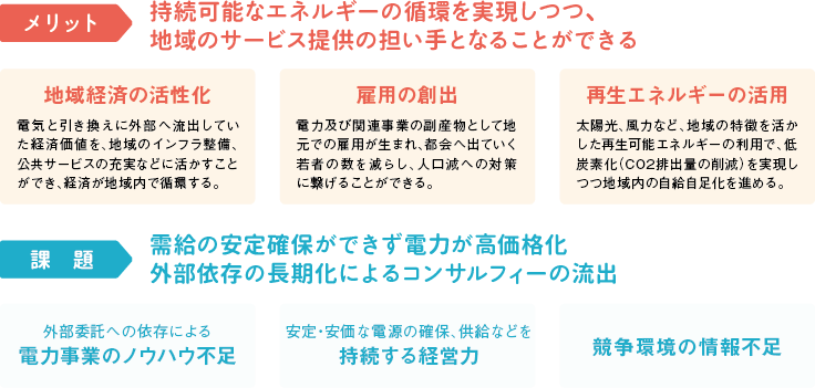 電力は、購入先による品質の違いがほとんどないため、市場でも入札でも価格が重視される傾向にある。立ち上げたばかりの小規模の自治体新電力にとって、価格競争の中を勝ち残るのは容易ではない。また、自治体新電力が地域に与えるメリットが住民に浸透していないと、新規契約が増えず、収益が伸び悩み、地域還元に手が回らないというジレンマに陥る。結果として徐々に体力が落ち、経営も困難になってしまう。
