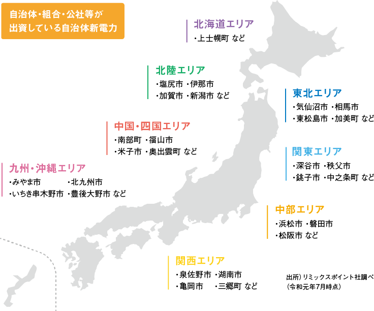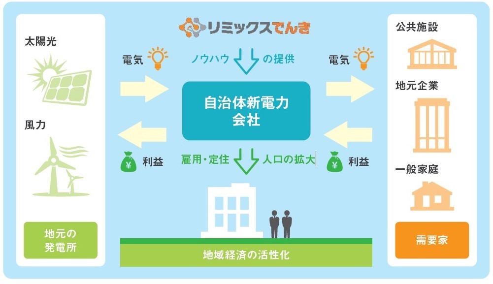 リミックスポイントは、自治体新電力による地域おこしをサポートする。電気事業が軌道に乗り、地域が活性化した後の利益を考えているため、立ち上げサポートのサービスは安価で提供している。まずは自治体新電力の自立を総合的に支援するため、大手電力会社にも劣らないノウハウを提供し、経営の基盤づくりを行う。