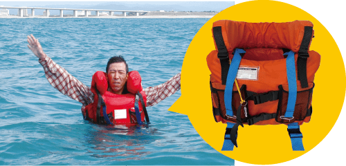 硬質ウレタンを使用した救命胴衣。高い耐衝撃性と、大人が3人つかまっても沈まない驚異の浮力を実現!