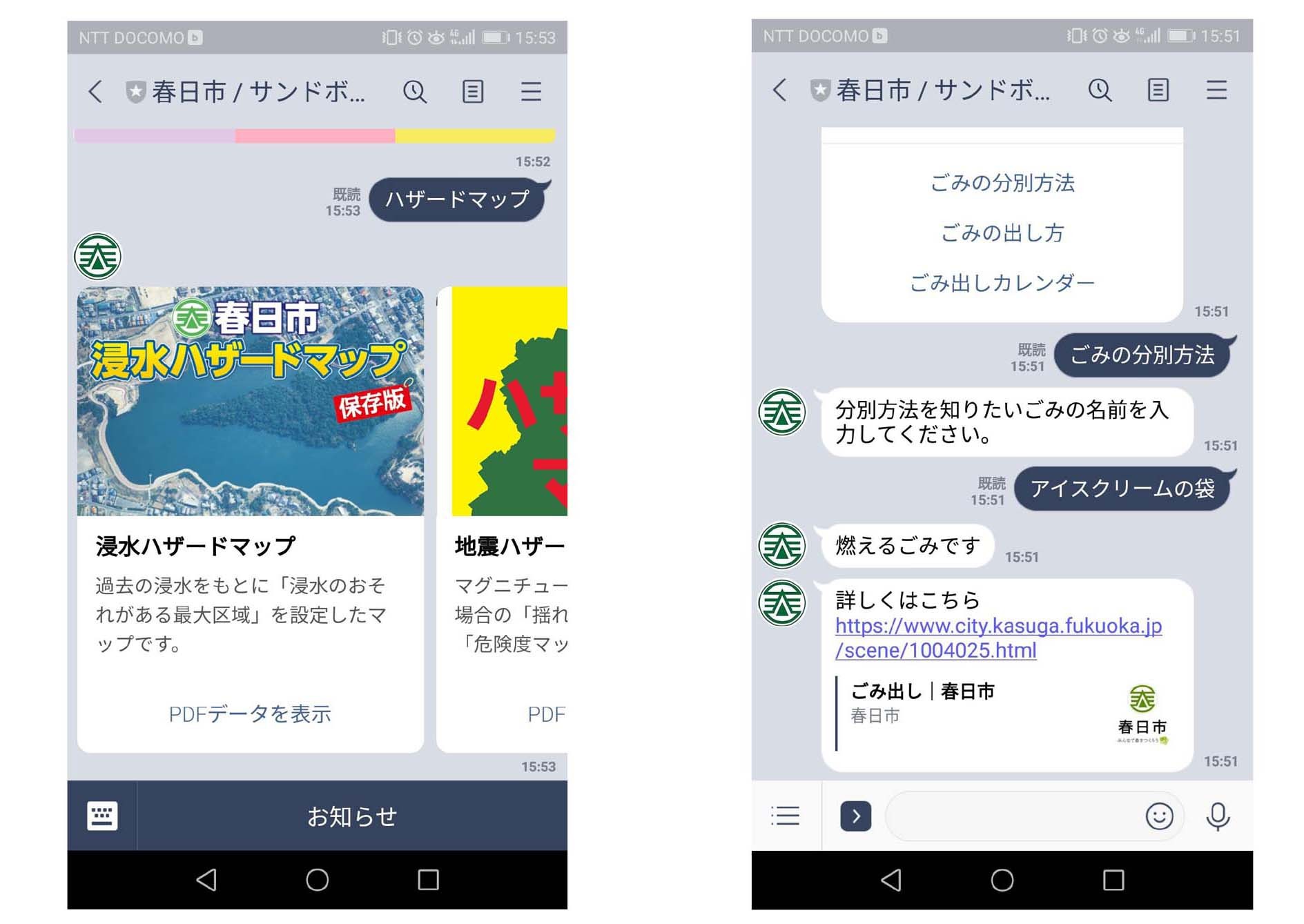 令和2年8月下旬より、「春日市LINE公式アカウント」を開設。LINEを活用し、より多くの市民に暮らしに関わる情報や各種手続きに関する情報を発信している。