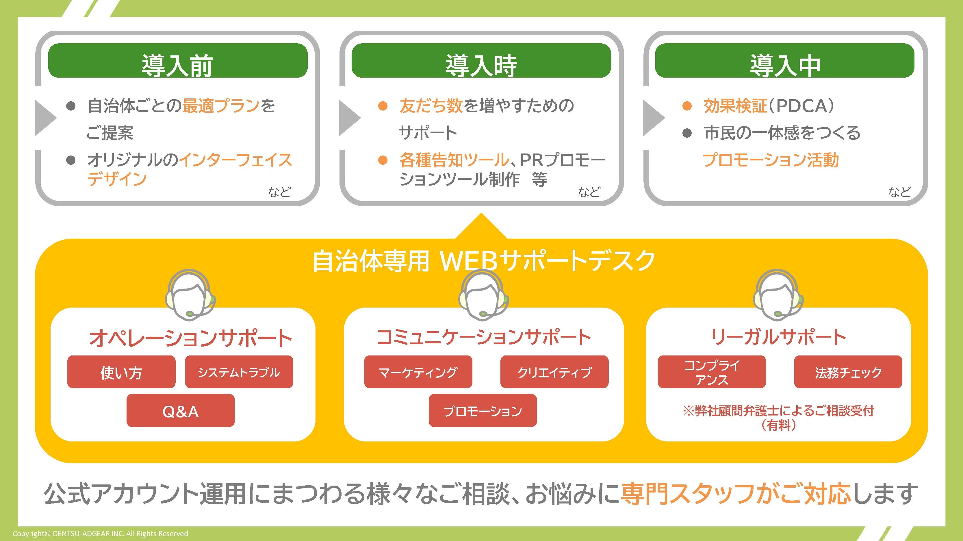 これらを総合的に成し遂げた結果が、福岡市の“友だち数172万⼈(※2020年10⽉時点)”ということだ。しかし、全ての自治体がそうした取り組みを成功させられる訳ではない。そんな時に頼れるのが、システムの導入から運用までを支えてくれる事業者だ。