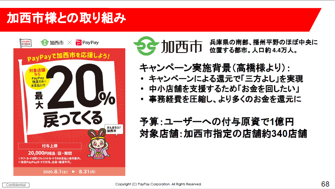 ここからは、密接を避けるためのICT活用をテーマに、キャッシュレス決済「PayPay」の活用で地域経済を元気にしようと取り組む加西市の事例を紹介。