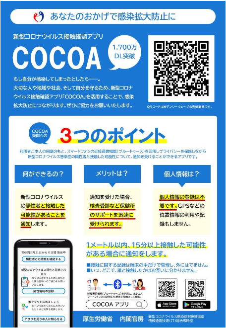 次に厚生労働省のCOCOA促進のために作成したアプリ導入啓発のチラシです。この狙いはQRコードをとにかく読み取ってもらいアプリをダウンロードしてもらうことにあります。チラシとウェブを行き来させる、アナログとデジタルを共存させる「クロスメディア」のやり方です。そして「あなたのおかげで感染拡大防止に」と一番目に付きやすい上部に配置をしました。これは行動心理学のバンドワゴン効果という人は同調しやすいという心理に基づいて配置しています。