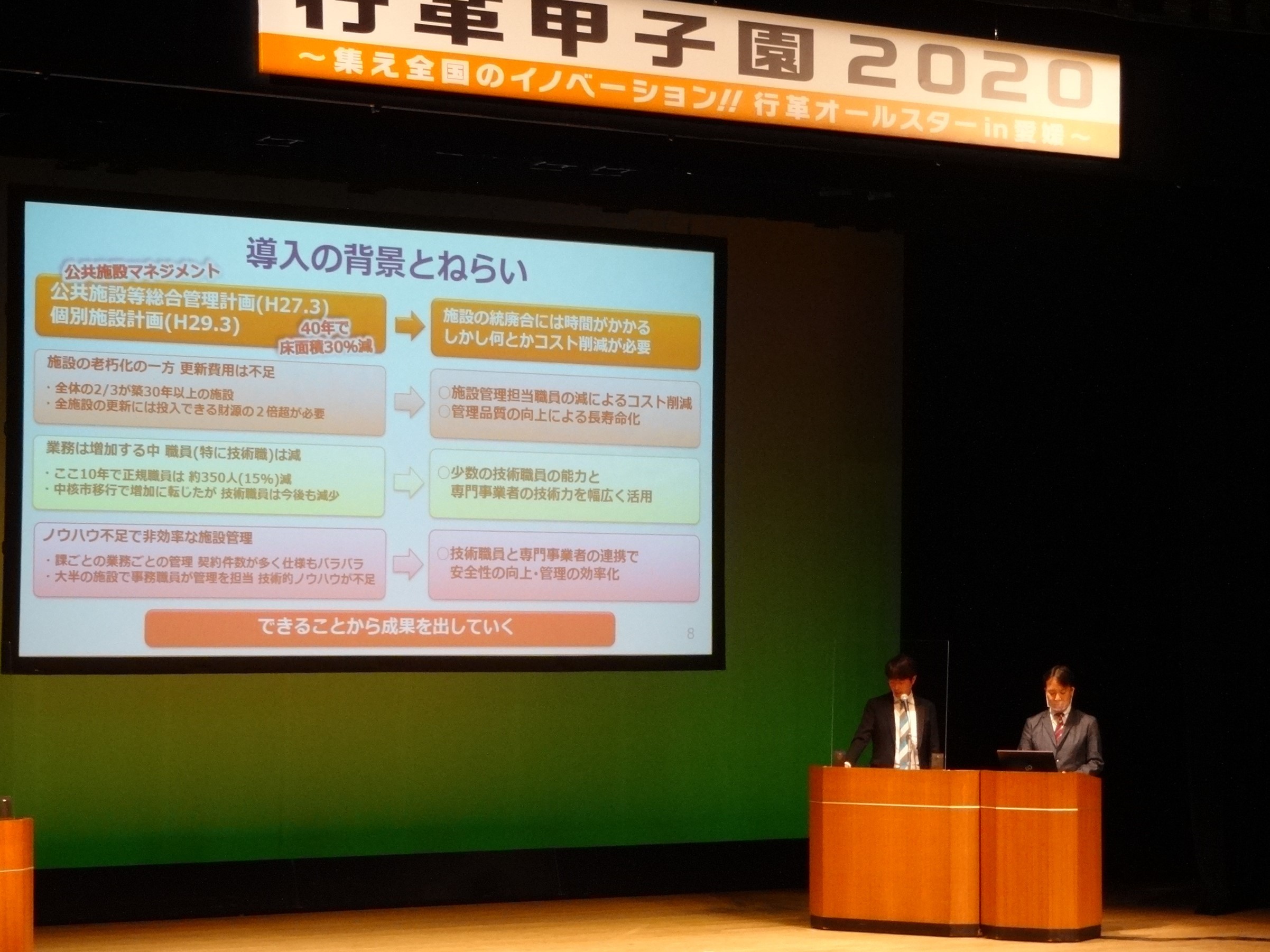 つづいて、前回優勝の松山市から優勝旗ならぬ「表彰旗」が返還され、いよいよ行革甲子園の本番がスタートとなる。