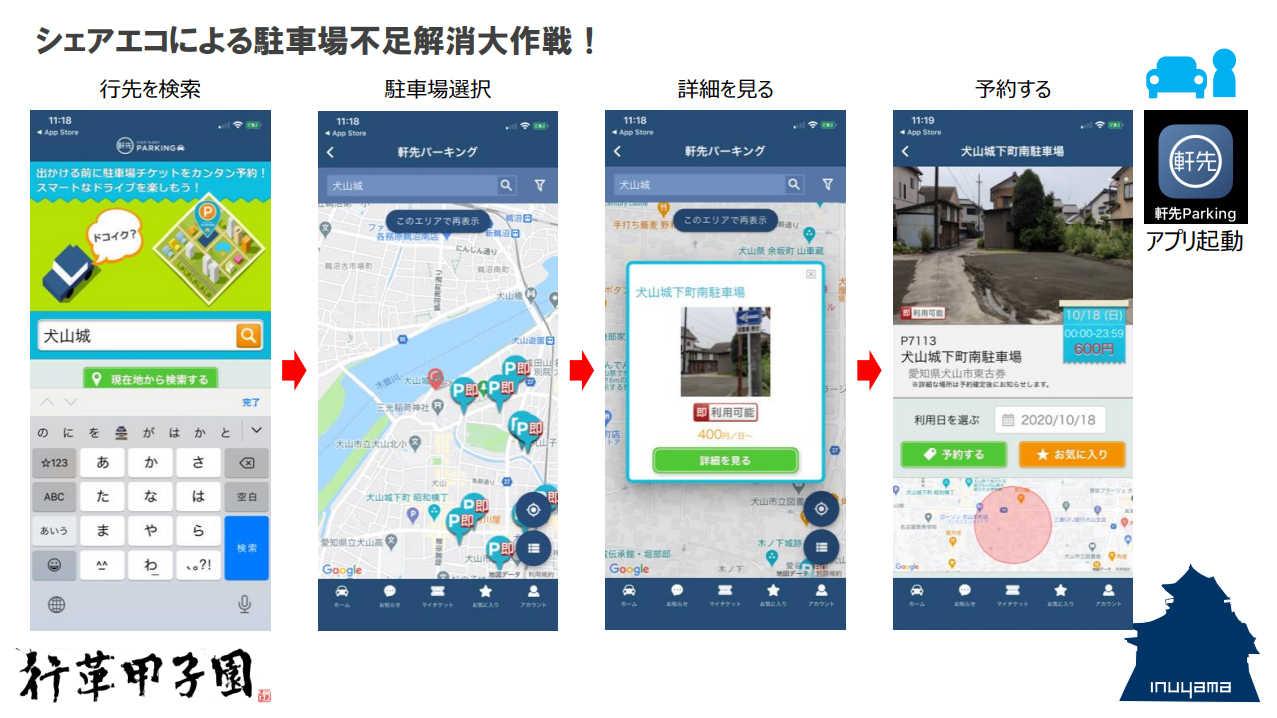その結果として発生した駐車場不足と、観光客の一極集中を解決すべく犬山市役所が取り組んだプロジェクトが、「~シェアエコで三方良し~シェアリングエコノミーを活用した行政課題解決“観光駐車場不足解消大作戦”」だ。