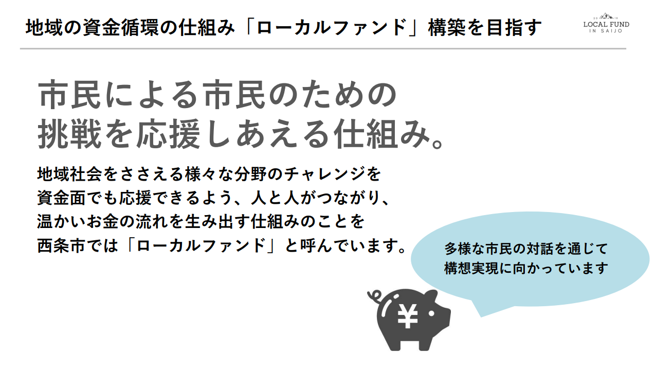 実際に西条市版SIBに出資した市民からは「自分が生まれ育った地域に何かしら恩返しをしたいと思っていた。でもどうしたらいいのかわからなかったが、SIBがその背中を押してくれた」という感想の声があったという。