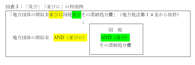 例えば、「及び」「並びに」は、日常用語では「AND」の意味でほぼ同様に利用されますが、法令用語では、「及び」を原則とし、これらに更に対象を加えるときは「並びに」を利用します。