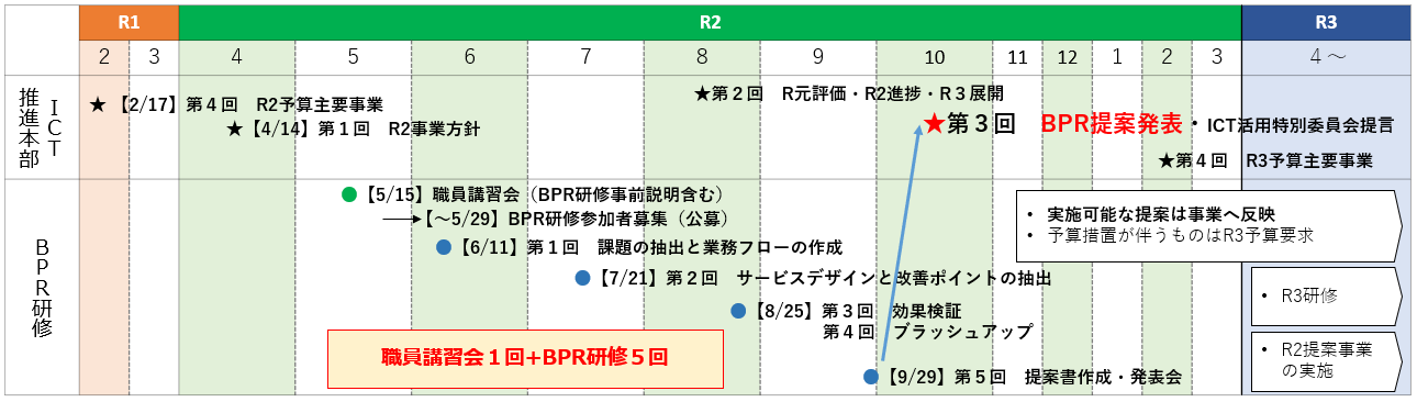 ・6月から9月末までの間でBPR研修(全5回)を実施。