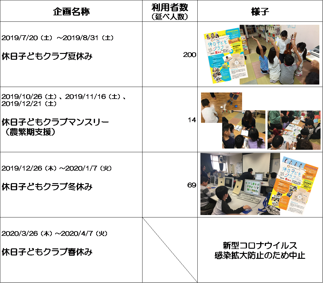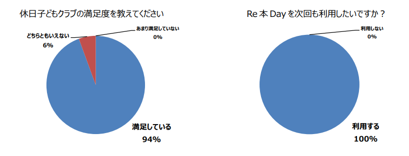 休日子どもクラブを利用した家庭を対象に、任意で利用後のアンケートを行った。