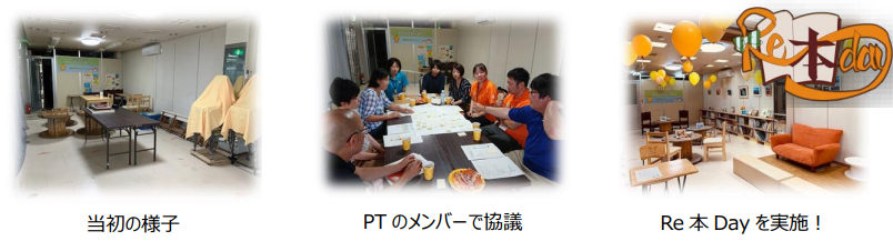 オーナーのご厚意により使用している施設1階部分を有効活用するために、やわたはま銀座バスケット連絡会と八幡浜市地方創生推進PTで活用方法を検討。リサイクルブックカフェ「Re本Day(りぼーんでー)」をモデル実施した。
