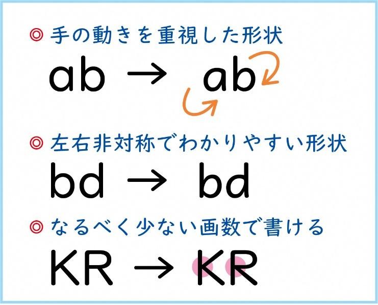 英語を習い始める子どもたちにとって、つまづきにくい字形が特徴