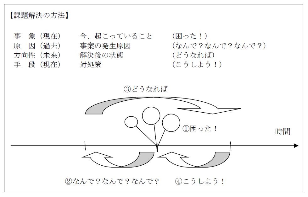 判明した原因を解決すべき方向性(③「どうなれば」)が見えた時点で、ようやく現在とるべき手段(④「こうしよう!」)が見えてきます。効果を考慮しない手法の選択は、役に立たないばかりか害にもなりかねません。