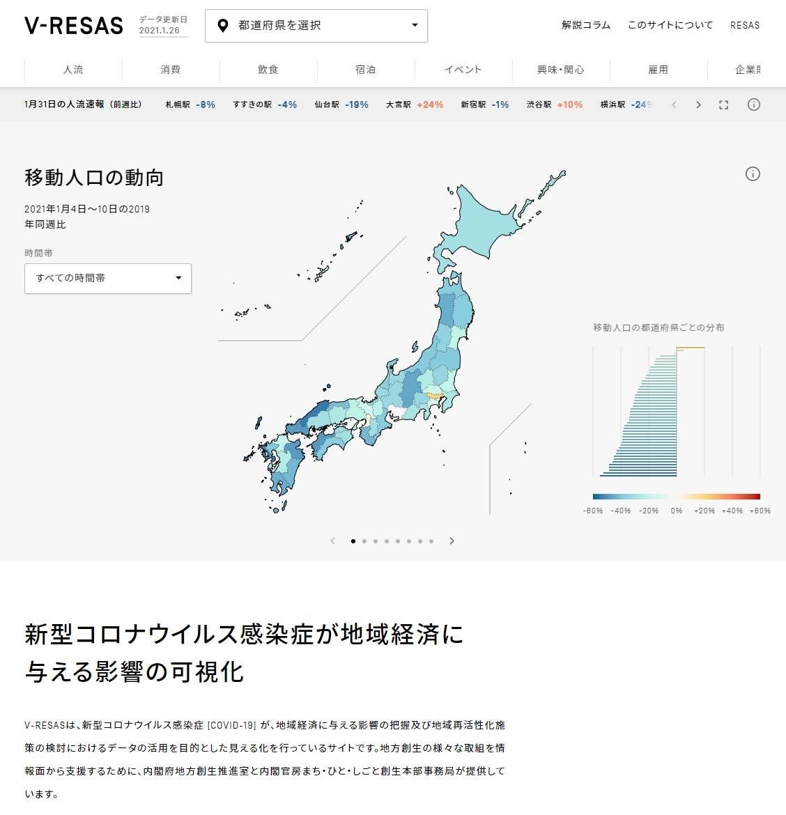 V-RESASでは、カテゴリーによって違いはありますが、多くのデータが2~3週間前のもので、その日のデータが確認できるものもあります。