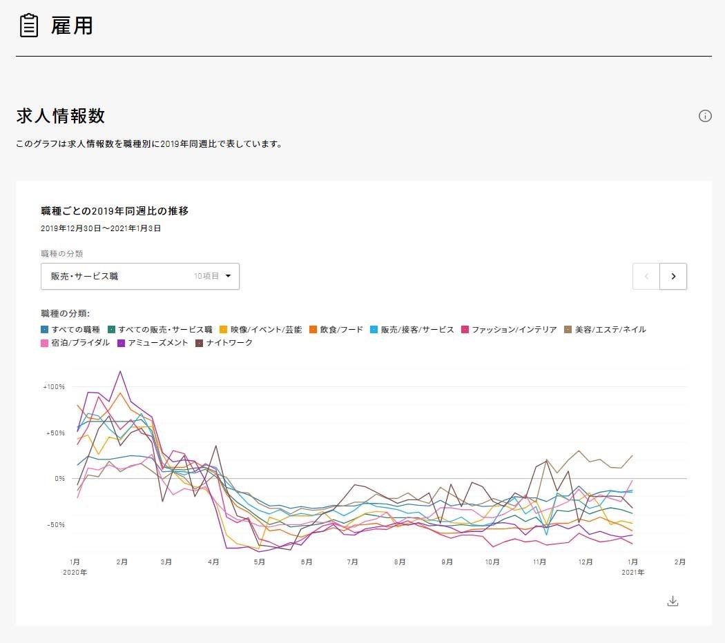 コロナ禍においては、飲食や宿泊、イベントなどの業種が大打撃を受けていますが、おのずとそれらの仕事に従事する人々にも影響があります。雇用状況を見ることは、そうした実情を知ることに繋がります。
