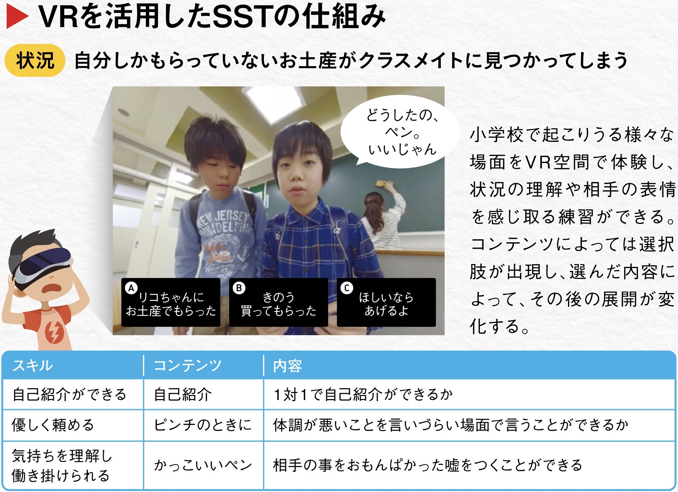 学校生活をVRでリアルに再現、ソーシャルスキル向上を図る。