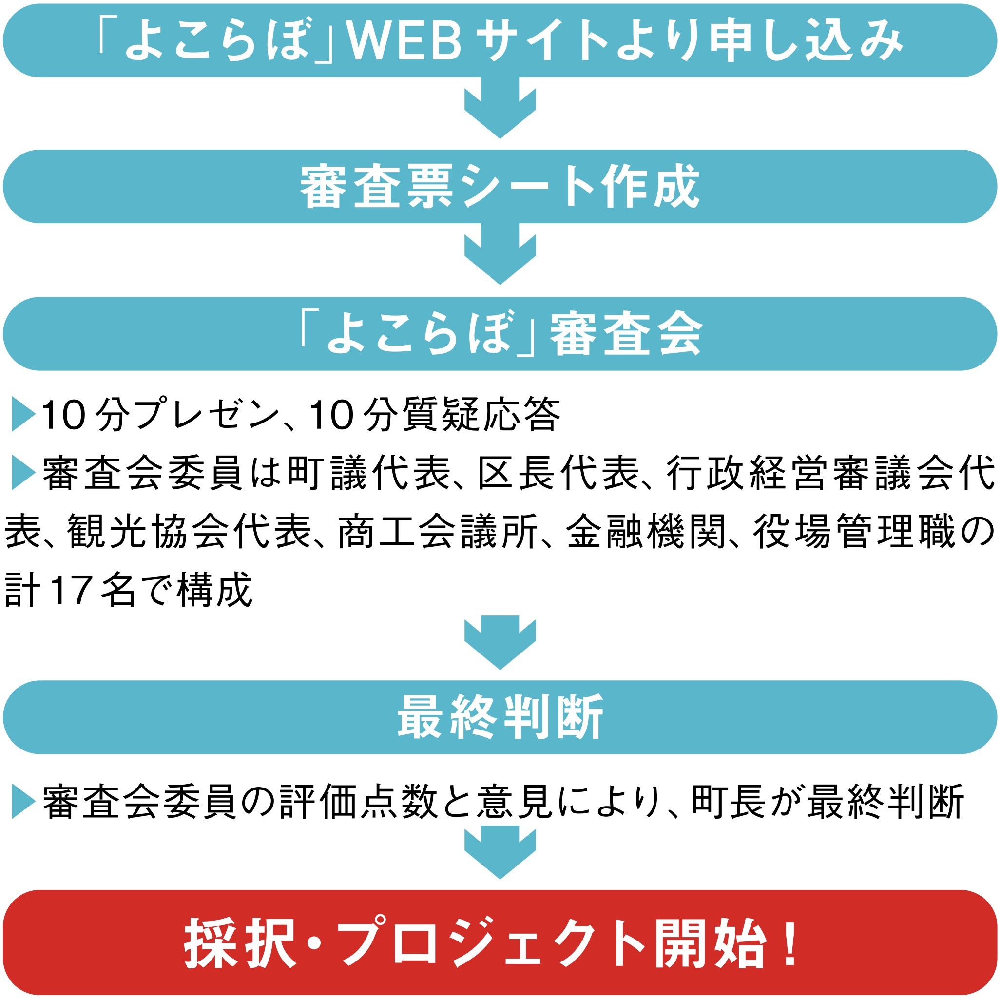 審査項目には、“実現可能性”“町ができる協力と提案者の希望との整合性”“提案者の熱意”などが設けられ、スピード感をもって合否が進められる。「毎月審査を実施し、最短で1カ月で採択が決定します。プロジェクトがスタートしてからも、課の担当者3名で分担し、伴走しています」。また、事前相談を行うなど応募のハードルを下げ、プロジェクトに見合う補助金制度などがあれば、その申請サポートも行っている。都心に近い地理的要因も、外部企業からの応募が増え、よこらぼの知名度が広がっていった理由のようだ。