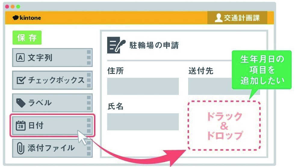キントーンはドラッグ&ドロップで簡単に構築・修正でき、システム設計の経験などは不要。マイナーチェンジや小修正は職員が対応することも可能で、スキルや経験を問わず、誰でも簡単に利用することができる。