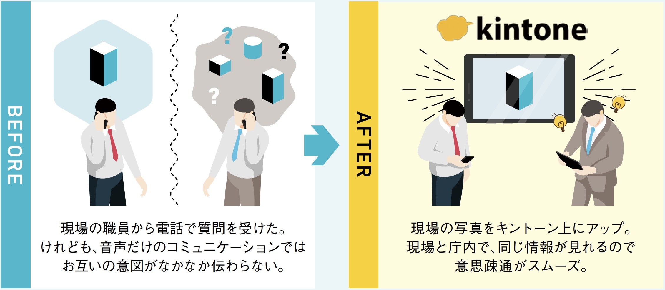 ■キントーンを使えば外出中の職員とのコミュニケーションもスムーズに!