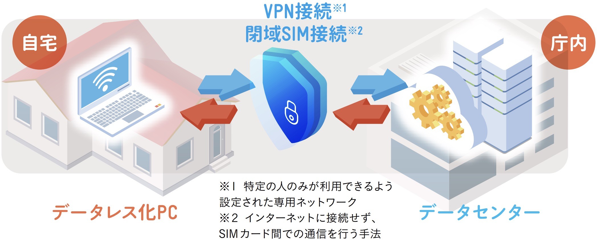 ※OSやアプリをクラウド上で一元管理し、データレス状態のPCからリモート操作するPC仮想化の一手法
