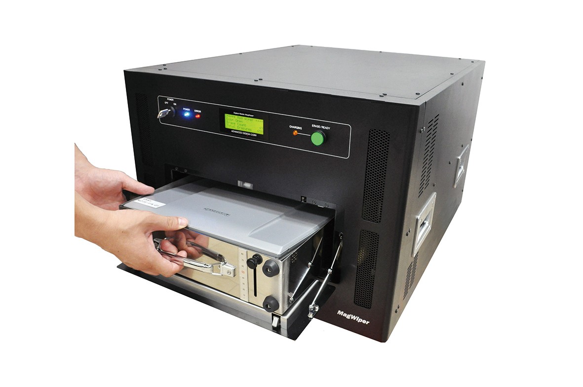 強力な磁気を当てることでHDDの磁界の向きを強制的に変え、無意味なデータに変換する(つまりデータを消去する)方法。同社の磁気データ消去機は、特許取得済みの独自技術「斜め磁化システム」を採用している。
