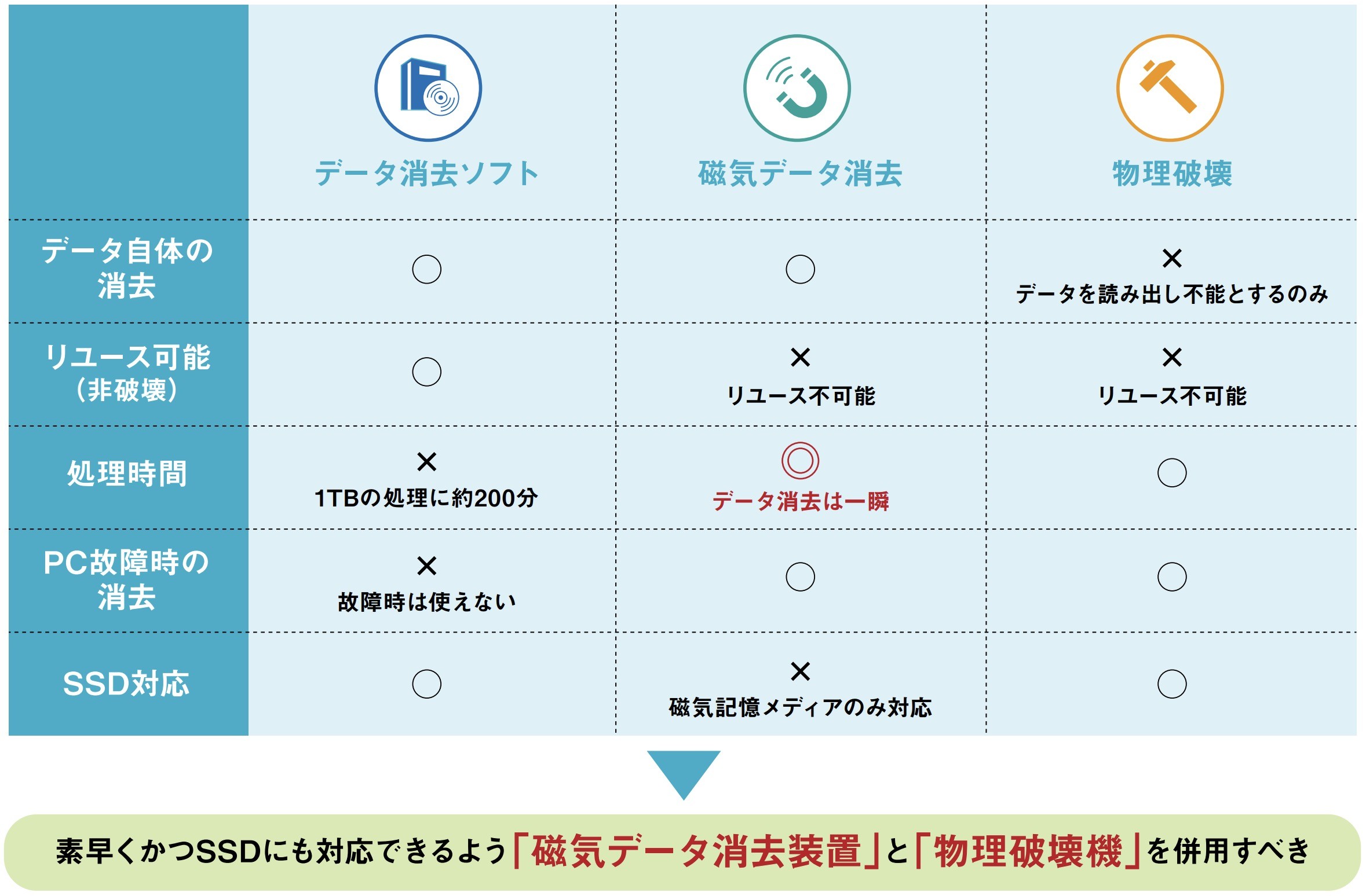 データ消去・破壊ソリューションの3種全てを目的に合わせて提供。