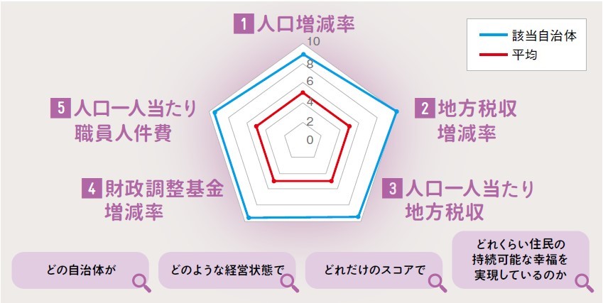 ※自治体スコアの評価指標5項目の詳しい算出方法(計算式)については、自治体四季報より確認可能です