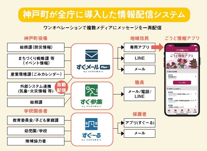 コロナ禍の影響により、全国の自治体で、緊急性の高い情報の発信数が増加している。一方、住民が情報を受け取るメディアは、日進月歩で多様化が進み、従来の手法では確実な伝達が難しくなってきた。そんな中、いち早く新たな仕組みを導入した神戸町の事例を紹介する。