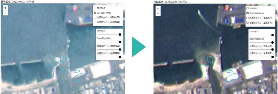 2週間ごとに更新される画像の比較で地表の変化を検出。