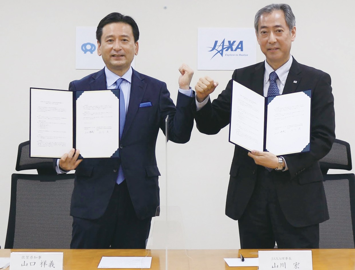 その翌年8月に佐賀豪雨が発生。あまりの豪雨に防災ヘリも飛ばず、被害情報が全く入ってこない時間があったのだという。このとき、「人工衛星を用いれば、このような課題も改善できるのではないか」と考えたのが、宇宙技術の利活用を本格的に推進するきっかけに。その後、JAXAとの連携を深めながら、令和3年3月、宇宙技術を地方創生につなげる連携協定が同県とJAXAとの間で締結された。