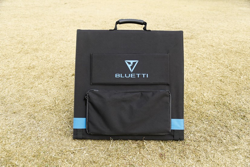蓄電池とセットで設置しておきたいのがこの太陽光発電ソーラーパネル。収納時はコンパクトなので移動も簡単だ。