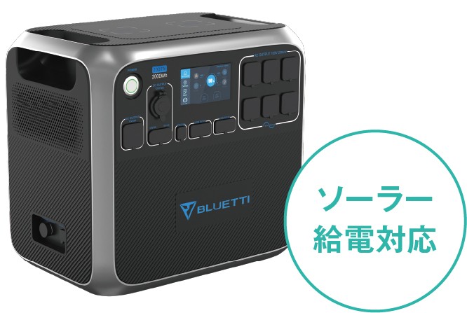 同社はこのほか、ポータブルタイプの蓄電池として「BLUETTI AC200P」も用意している。最大直径が42㎝とコンパクトなので、小型車で移動する際などには重宝するという。