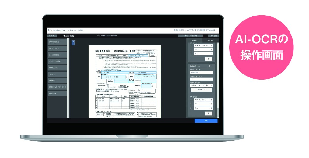 AIエンジンによる読み取りで、活字や手書き文字を高精度で読み取り可能。