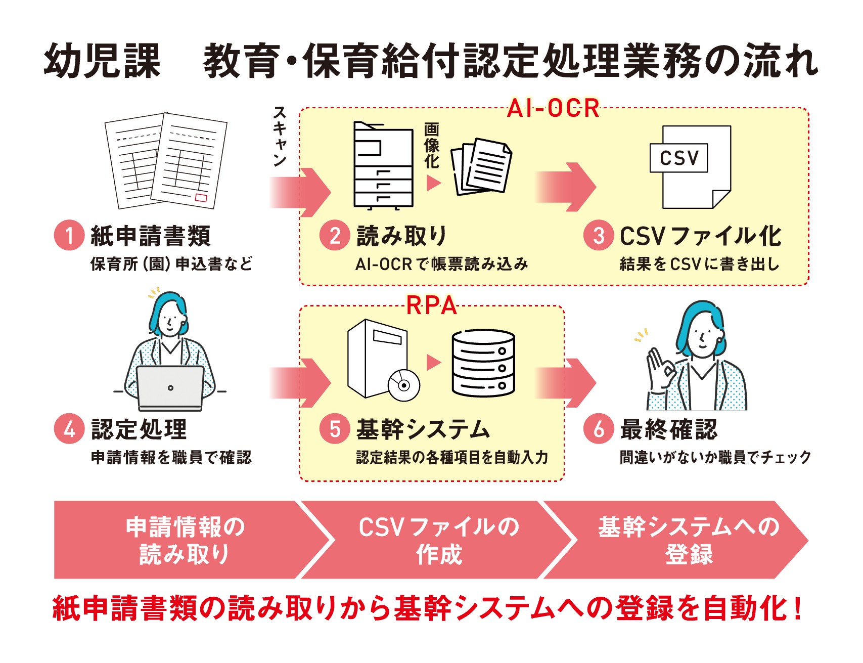 そこで令和元年度、全庁的にICTを推進するため庁内各課でICT推進員を選任。令和2年7月にプロポーザルを実施し、「NTTビジネスソリューションズ※」が提供する「NaNaTsu AI-OCRwith DX Suite(以下、AI-OCR)」とRPAツール「WinActor」の導入を決めた。